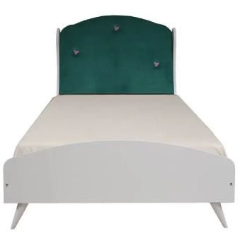 LIT CHAMBRE CINDY BLANC-VERT – Dimensions : 190×120 cm (H128/L126/P215 cm) – Couleur : Vert / Blanc.